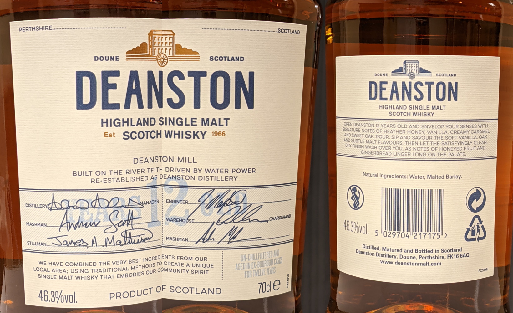 | Deanston 12 yo, 0.70 liter, 46.3% Rak och rättfram. Helt OK