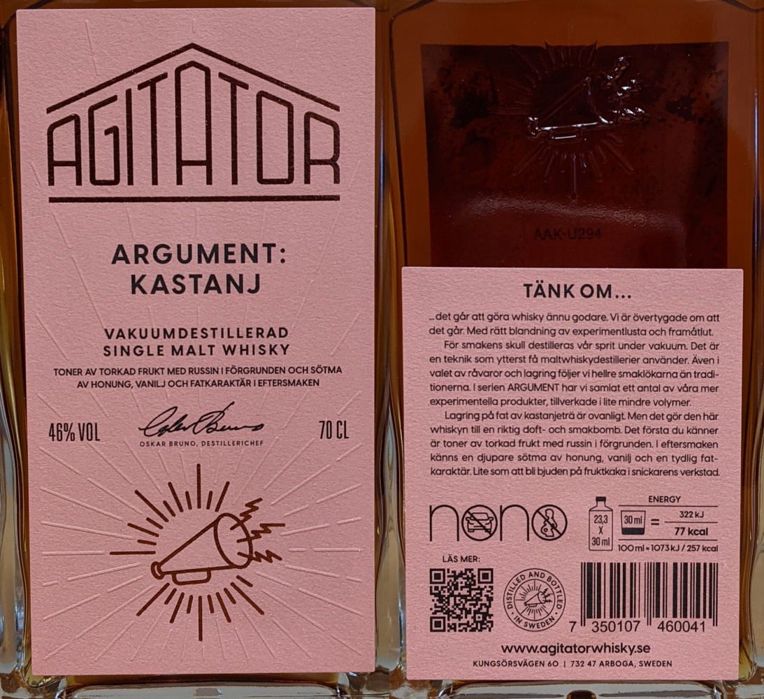 | Agitator Argument Kastanj 0.70 liter, 46.0% Mest rökig av alla, dvs lite.
