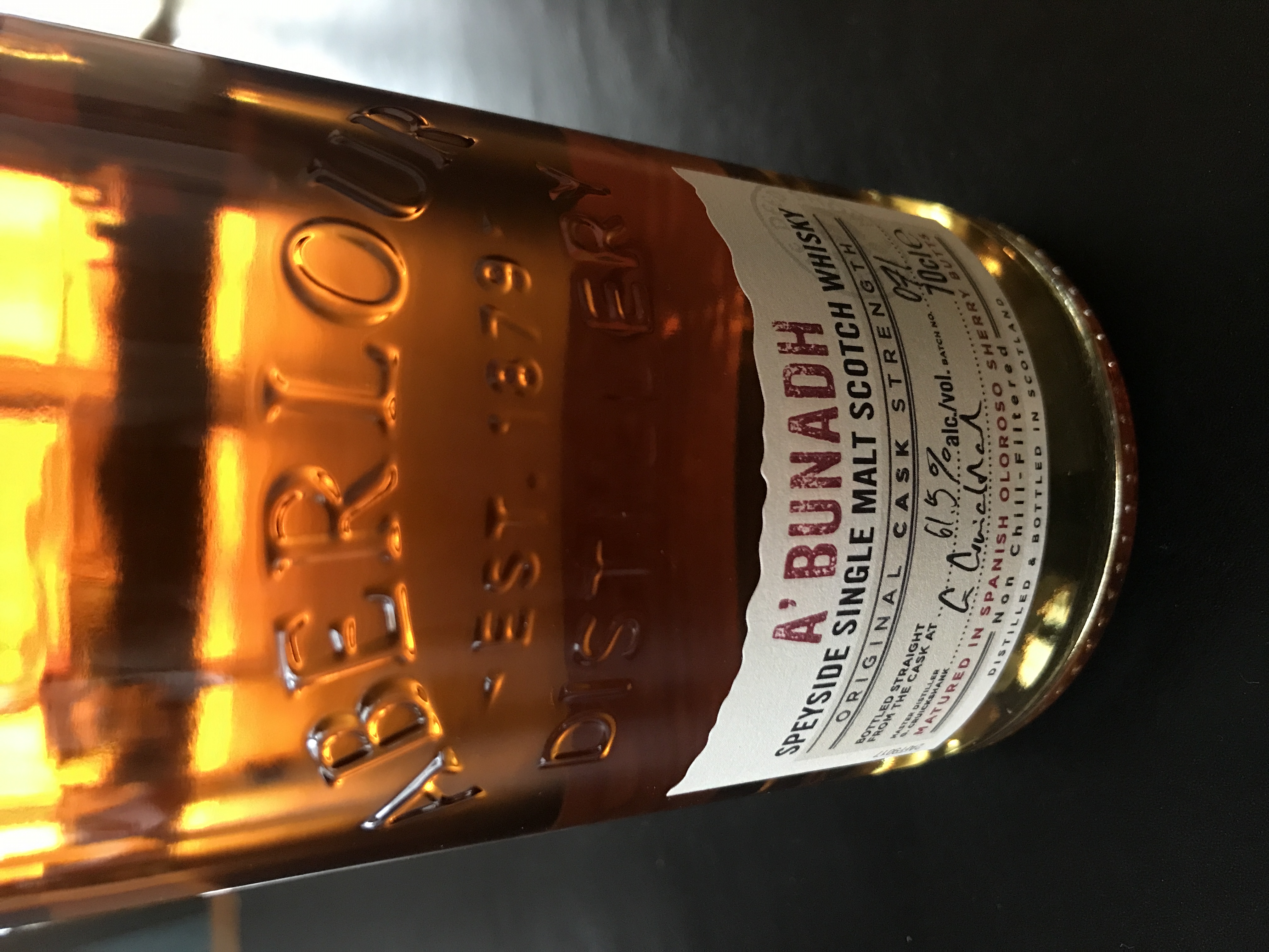 | Aberlour a'bunadh 0.70 liter, 61.9% Batch 71 Oljerock, galon. God som vanligt.