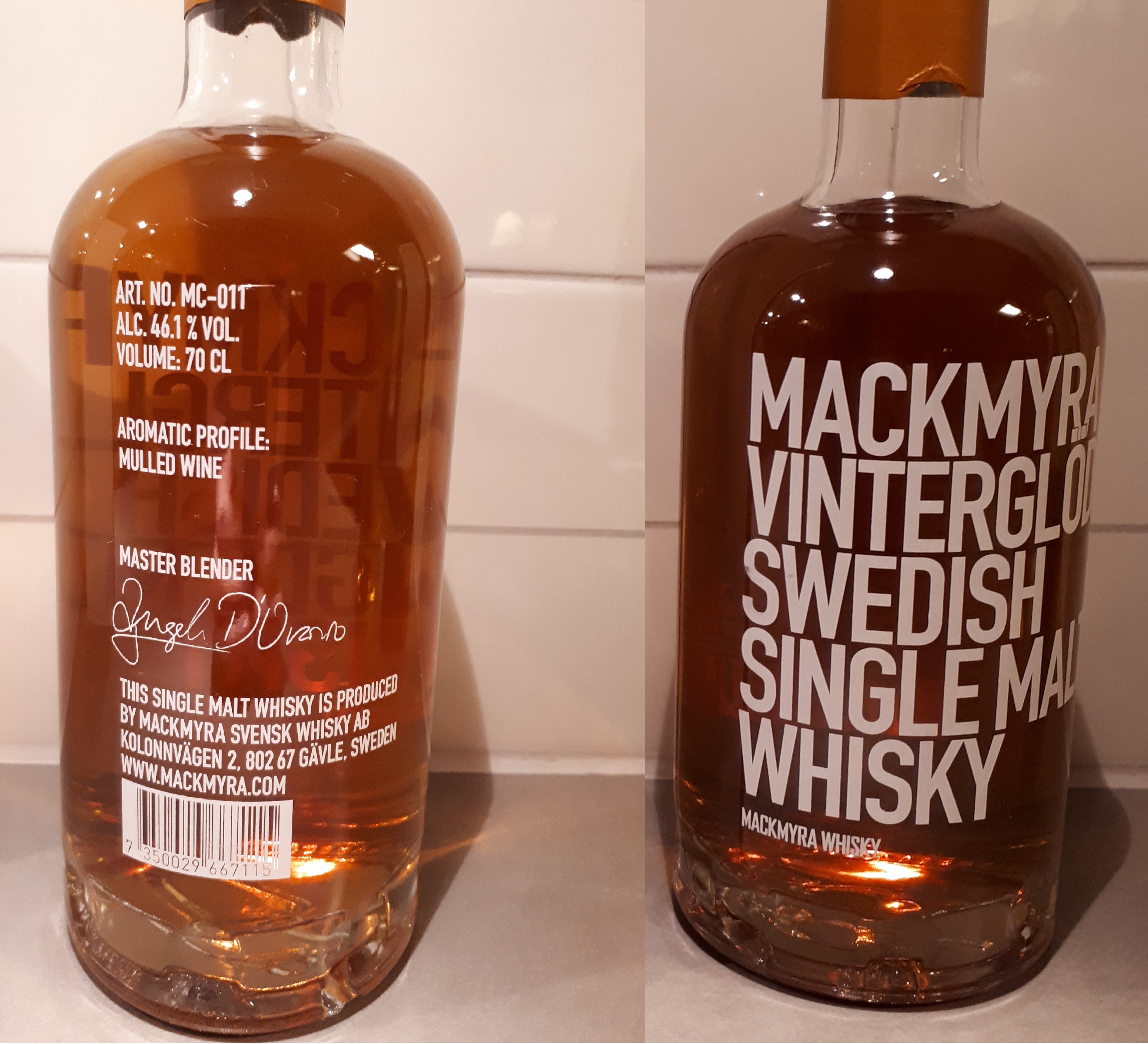 | Mackmyra Vinterglöd 0.70 liter, 46.1% Lagrad på ekfat som tidigare använts för att lagra sherry av typen pedro ximenez samt glögg!.