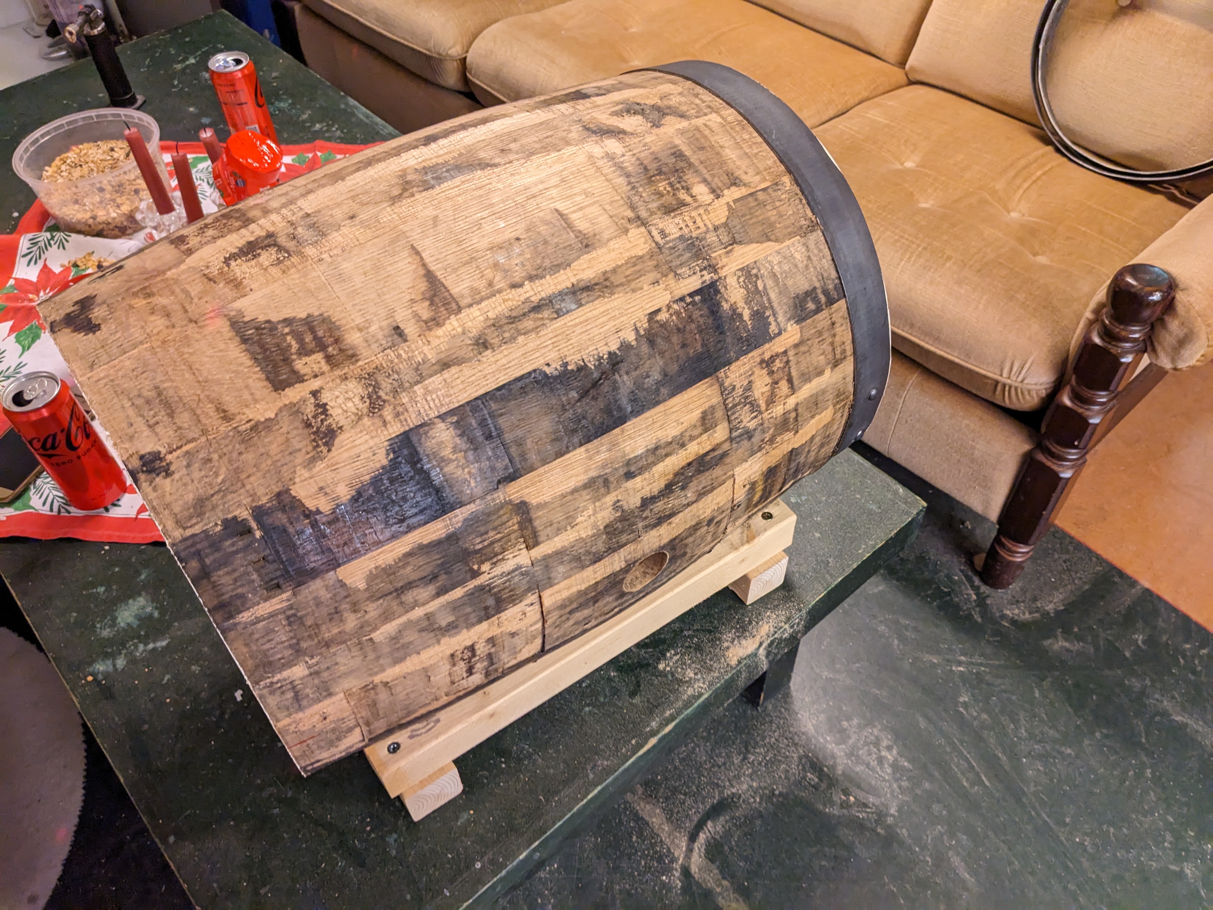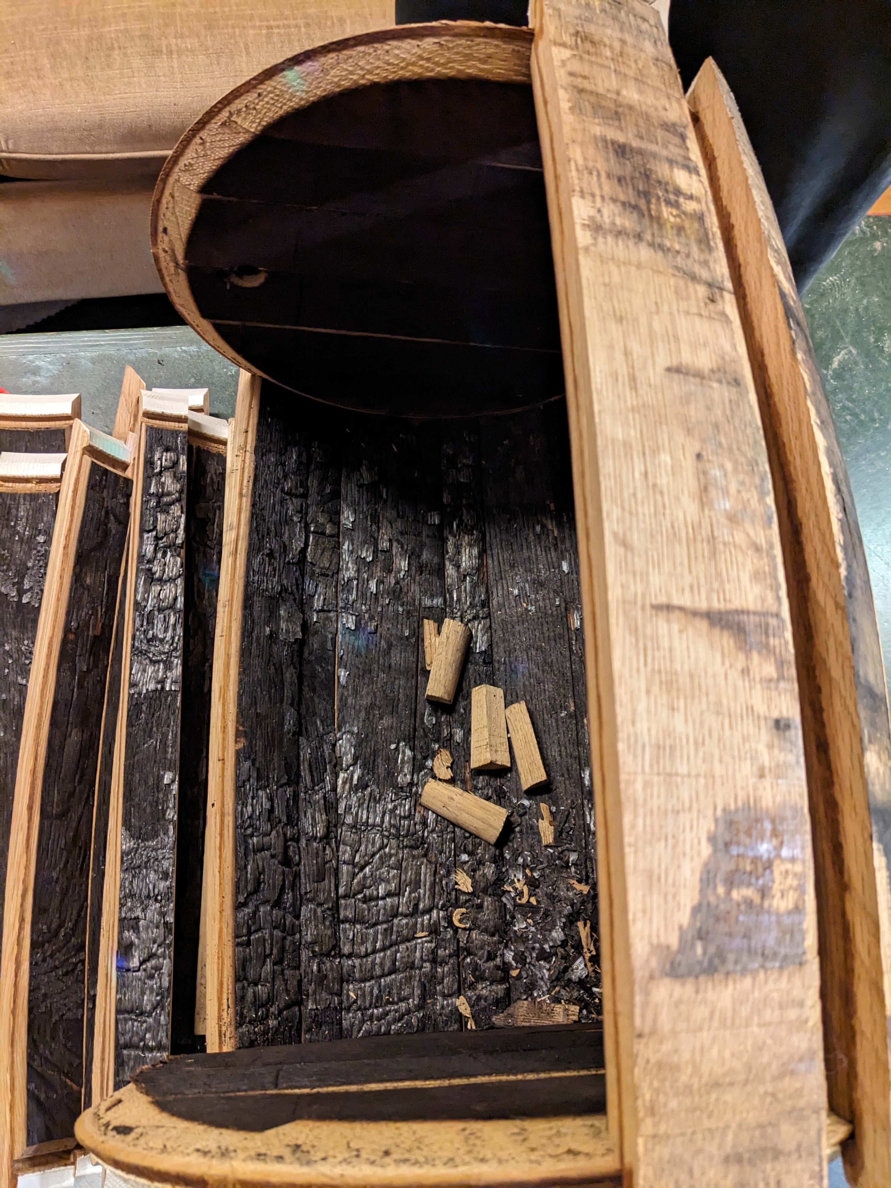 FatetEfter tömning vägde vi fatet. Det vägde då 17,1 kg. Stavarna hade sugit åt sig 0,8 kg sprit jämfört med för 12 år sedan. | |