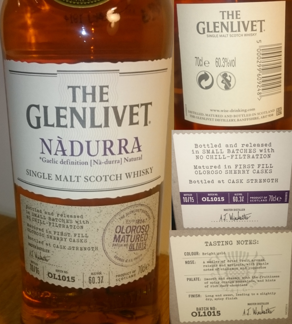 | Glenlivet Nádurra Oloroso 1.00 liter, 48.0% Oljigt, gummi.