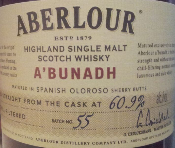 | Aberlour a'bunadh 0.70 liter, 60.9% batch 55 | Etikett saknas | 0.675 liter |